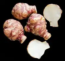 Les tubercules se consomment cuits de diverses manières : en salade, chauds en accompagnement, frits, en purée, beignets, sautés au beurre, etc.[2]. On peut aussi les consommer crus, râpés ou coupés en lamelles, comme des crudités dans de la vinaigrette. Leur saveur se rapproche de celle des fonds d'artichaut ou des salsifis[23].