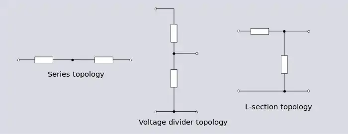 On peut voir toutes ces topologies comme des sections de topologie en échelle. Les sections plus longues seraient décrites comme une topologie en échelle. On analyse et on caractérise souvent ces types de circuits en termes de réseau à deux ports[6].