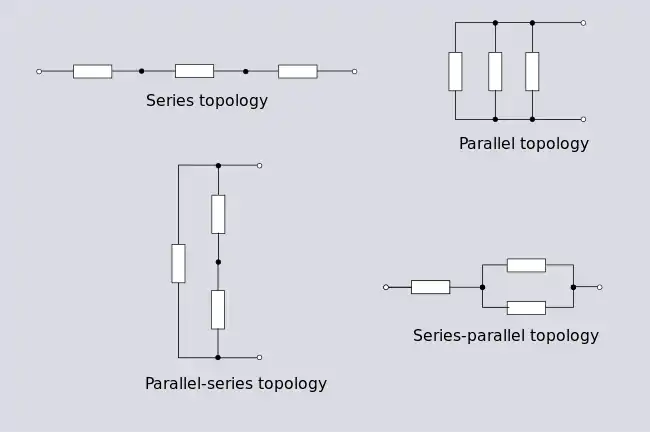 On peut construire des topologies en série et parallèles en y ajoutant toujours plus de mailles jusqu'à l'infini. Le nombre de topologies uniques pouvant être obtenues avec n mailles est de 2n-1. Le nombre total de topologies uniques pouvant être obtenues avec au plus n mailles est de 2n-1[3].