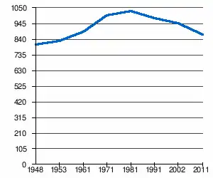 - (sr + en) « Livre 20 : Vue d'ensemble comparative de la population en 1948, 1953, 1961, 1971, 1981, 1991, 2002 et 2011, données par localités) » [PDF], Pages du recensement de 2011 en Serbie - Institut de statistique de la république de Serbie, (consulté le )
