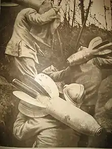 Dans l'argot des Poilus durant la Première Guerre mondiale, le terme « torpille » désignait un projectile d'artillerie venant bouleverser les tranchées. Par extension, il était parfois donné improprement à la pièce d'artillerie qui servait à le lancer, en général un mortier de tranchée (également surnommé crapouillot , terme appliqué tant au 58 mm français qu'à un Minenwerfer allemand).