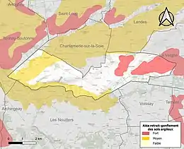 Le retrait-gonflement des sols argileux est susceptible d'engendrer des dommages importants aux bâtiments en cas d’alternance de périodes de sécheresse et de pluie. 41,7 % de la superficie communale est en aléa moyen ou fort (54,2 % au niveau départemental et 48,5 % au niveau national). Sur les 166 bâtiments dénombrés sur la commune en 2019, 116 sont en aléa moyen ou fort, soit 70 %, à comparer aux 57 % au niveau départemental et 54 % au niveau national. Une cartographie de l'exposition du territoire national au retrait gonflement des sols argileux est disponible sur le site du BRGM[13],[Carte 2].