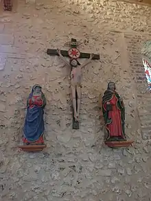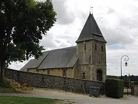 L'église Saint Pierre, du XVIIIe siècle, située sur une colline surplombant la vallée du Fouillebroc, possède une abside semi-circulaire du XIe siècle. Elle abrite plusieurs statues en bois polychrome..jpg.webp)