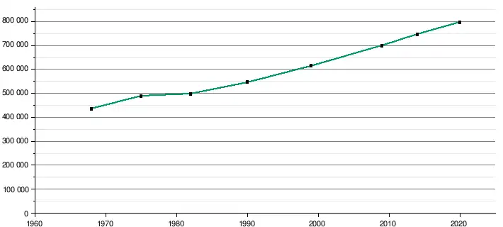 La population métropolitaine ne cesse de croître depuis les années 1970 : elle est passée de plus de 430 000 habitants à plus de 800 000 habitants en 2020, soit presque le double. Cette dynamique se retrouve d'ailleurs sur l'ensemble de l'aire d'attraction de Toulouse, même si elle est plus importante dans les communes de la couronne périurbaine. Cependant, ces chiffres pourraient être plus importants si le territoire de la métropole englobait l'ensemble de l'agglomération, celle-ci comptant plus d'1 million d'habitants.