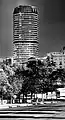 Vue de la station Poterne des Peupliers du tramway T3 ; la tour Super-Italie est visible au milieu de la photographie. L'immeuble à droite est la tour Chambord