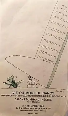 À l'époque, la ville est en train d'achever une période de grands réaménagements urbains au niveau du quartier ancien Saint-Sébastien qui a été complètement rasé pour se voir remplacer progressivement par six immeubles de grandes hauteurs (un septième y sera construit en 1978), un collège et un centre commercial. À la suite de cette première vague de destructions et de l'annonce de celle à venir dans la suite de la construction de la tour, un comité d'opposants décide de mettre en place une exposition intitulée "Vie ou Mort de Nancy" et visant à alerter et sensibiliser l'opinion sur le patrimoine historique déjà perdu et celui voué à disparaître. Cette exposition attirera près de 9000 personnes. Des personnalités sont également intervenues comme le commissaire-priseur, spécialiste de l'Art nouveau , Maurice Rheims. Celui-ci proposa de donner à Nancy une conférence de dissuasion pour que la municipalité renonce à son plan d'urbanisme du secteur de la gare. La Chambre de commerce et d'industrie, la salle Poirel et l'Excelsior furent ainsi sauvés alors que, dans le cas de ce dernier, les propriétaires avaient déjà négocié la destruction avec les promoteurs, moyennant l'édification d'une guinguette sur la place Thiers[source secondaire souhaitée].