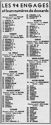 Liste des coureurs