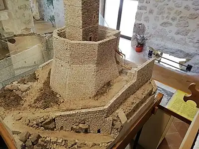 Avec l'invention de la poudre, deux ouvertures furent faites pour deux canons (couleuvrines, bombardes) latéralement à l'entrée pratiquée dans l'enceinte. Il existe des maquettes de la tour la représentant à la fois sous sa forme actuelle et sous celle qu'elle avait probablement au Moyen Âge et à la Renaissance.