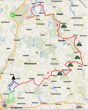 Le parcours est similaire à celui de l'année précédente. Il débute à Assen. Il emprunte ensuite les classiques secteurs forestiers pour se diriger vers Hoogeveen. Le mont VAM est escaladé pour la première fois à soixante-dix kilomètres de la fin. Les coureuses font alors trois tours d'un circuit autour du mont avant de se diriger vers Hoogeveen. Une fois ce détour par la ville effectué, le mont VAM est monté une ultime fois à 14 km de l'arrivée. Le parcours retourne alors vers Hoogeveen et la ligne d'arrivée[1].