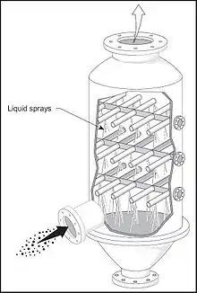 Les tours de lavage permettent de traiter des gaz chauds, mais consomment beaucoup d'énergie[1].