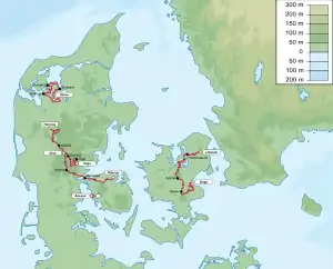 | 1re étape | 16 août | Lillerød – Køge | étape de plaine | 222,6 | 1 231 m | ||