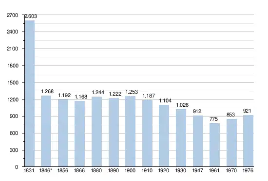 - Sources:INS, Rem:1831 jusqu'en 1970=recensements, 1976= nombre d'habitants au 31 décembre