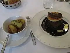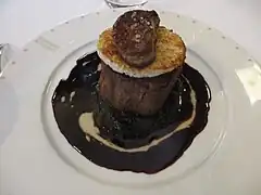 Tournedos Rossini sur pain grillé, avec foie gras poêlé, lamelles de truffe, et sauce madère | |