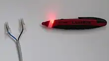 Son usage est partiellement remplacé par celui du « vérificateur d'absence de tension sans contact »[3] ne nécessitant pas de contact direct avec les conducteurs en détectant, à faible distance, la présence d'un champ électrique[alpha 1].