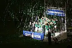 Score final (13-10), les supporters anglais entonnent Swing Low, Sweet Chariot pour fêter le XV de la rose qui sort vainqueur d'un grand match de rugby.