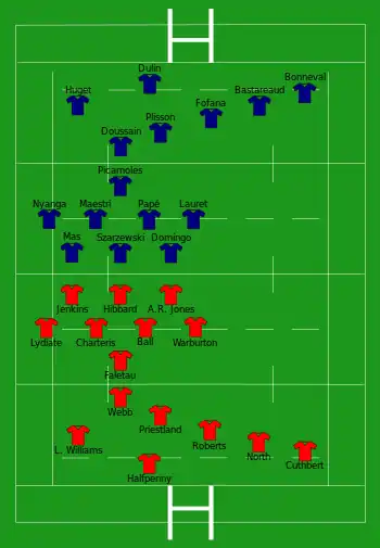 | Avants | Pilier | Ryan Bevington, Paul James, Gethin Jenkins, Adam Jones, Rhodri Jones, Samson Lee |