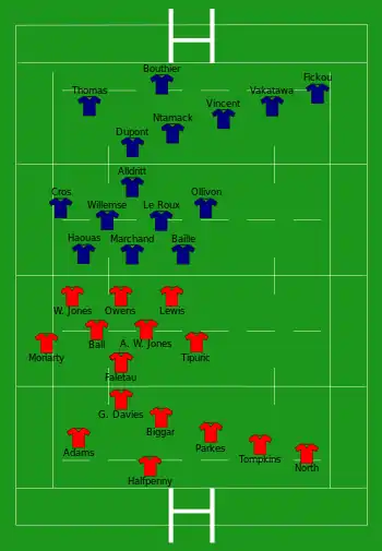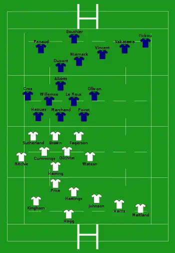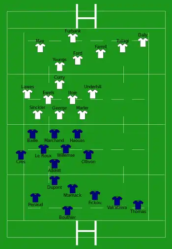 - 4 essais de Dupont (6e), pénalité (29e), Ntamack (43e), Vakatawa (70e)