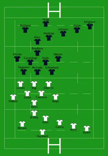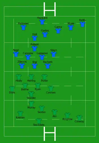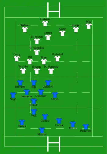 | Troisième ligne aile | Marco Lazzaroni, Giovanni Licata, Johan Meyer, Sebastian Negri, Giovanni Pettinelli, Jake Polledri | |