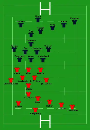 - 3 pénalités de Halfpenny (10e, 22e), Biggar (40e)