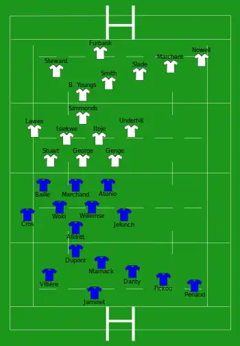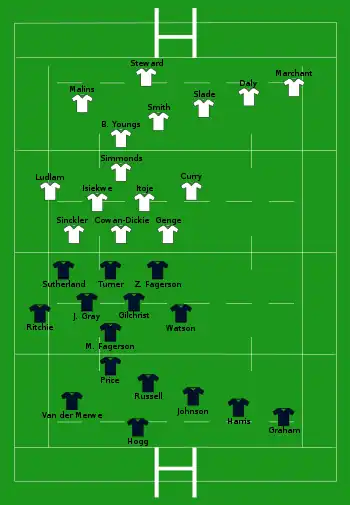 - 5 essais de Johnson (18e), Harris (22e, 37e), Graham (48e) et Hogg (61e)