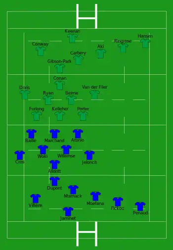- 9 essais de Carbery (4e), Gibson-Park (21e), Lowry (30e, 57e), O'Mahony (38e), Lowe (52e, 76e), Baird (70e) et Treadwell (80e+2).