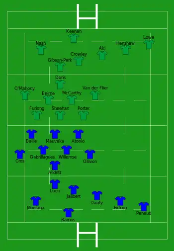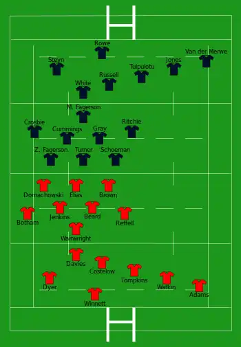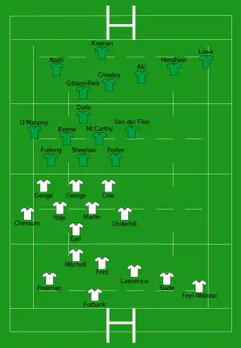 Lors de la semaine précédant la troisième journée, le demi de mêlée titulaire Alex Mitchell déclare forfait pour ce match, il est remplacé par Harry Randall[6].