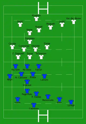 | Centre | Juan Ignacio Brex, Tommaso Menoncello, Federico Mori, Marco Zanon | |