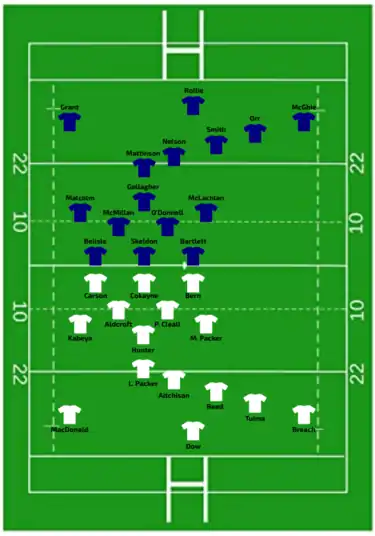 - 6 essais de Smith (40e), Skeldon (47e), Bartlett (56e), McGhie (65e), Malcolm (74e) et Rollie (80e+1).