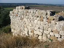 Propriété des seigneurs des Baux au Moyen Âge, le site est habité depuis bien plus longtemps[3]. Les premières traces d'occupation semblent remonter au IIe siècle av. J.-C.[1], même si des tessons retrouvés pourraient être plus anciens de deux à trois siècles. L'oppidum n'est fortifié qu'à partir du IIe siècle av. J.-C., période à laquelle il s'entoure d'un mur en brique crue sur un socle de pierres sèches large de 1,50 mètre[4]. Le parement en grand appareil est postérieur à ce premier rempart mais date approximativement de la même période ou au plus tard de la période augustéenne[1]. Contre le rempart, des cases à brique crues sur solin de pierres sont appuyées. Le rempart a beaucoup souffert. Ses blocs ont été prélevés au Moyen Âge pour permettre la construction de divers ouvrages. On considère qu'il devait se trouver deux portes au castrum, au nord et au sud, même s'il n'a pas été possible d'en apporter la preuve à ce jour[5]. Les pierres utilisées viennent probablement des Alpilles. Il s'agit d'un calcaire burdigalien typique des Baux ou du Montpaon[5]. Le premier rempart devait être en briques crues, comme le mur des maisons du castrum, tandis que le second rempart, de moindre qualité, était fait d'adobes.