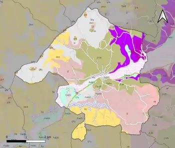 La superficie cadastrale de la commune publiée par l'Insee, qui sert de référence dans toutes les statistiques, est de 25,43 km2[6],[11],[Note 2]. La superficie géographique, issue de la BD Topo, composante du Référentiel à grande échelle produit par l'IGN, est quant à elle de 26,28 km2[3].