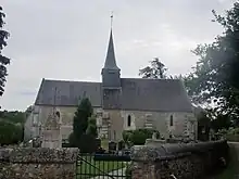 - Le cimetière de Touville avec son if et les frênes en bordure de la route,