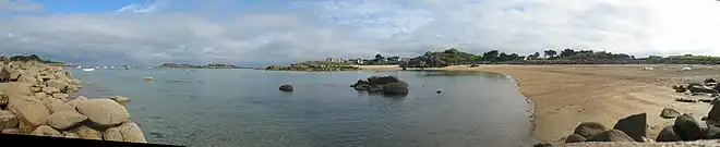 La côte, où alternent rochers de granite rose, douze plages de sable fin aux orientations diverses et chapelets d’îlots pittoresques, s’allonge sur 17 kilomètres.