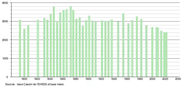 2 409 hab. (2021 en diminution de 2,47 % par rapport à 2015)