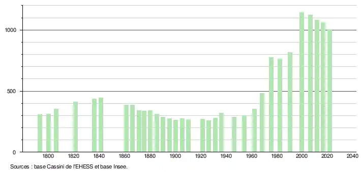 (Sources : Ldh/EHESS/Cassini jusqu'en 1999[22] puis Insee à partir de 2006[23]. |recens-prem=2006 |nom.)