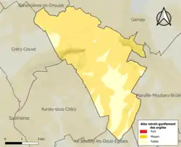 Le retrait-gonflement des sols argileux est susceptible d'engendrer des dommages importants aux bâtiments en cas d’alternance de périodes de sécheresse et de pluie. 79,9 % de la superficie communale est en aléa moyen ou fort (52,8 % au niveau départemental et 48,5 % au niveau national). Sur les 567 bâtiments dénombrés sur la commune en 2019, 501 sont en aléa moyen ou fort, soit 88 %, à comparer aux 70 % au niveau départemental et 54 % au niveau national. Une cartographie de l'exposition du territoire national au retrait gonflement des sols argileux est disponible sur le site du BRGM[19],[Carte 2].