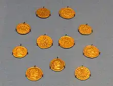 Deux multiples de la Tétrarchie au module de 10 aurei, connu comme des unicum et provenant du trésor, sont la propriété de l'American Numismatic Society[4].