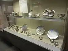 Le trésor se comporte 39 pièces, 6 sont en bronze argenté et les autres en argent. Cet ensemble comprend de la vaisselle, des objets de toilette et des décors de table, probablement le service d'argenterie d'un riche gallo-romain d'une villa locale. Alors que quelques-uns des objets datent du IIe siècle, la plupart proviennent du IIIe siècle. Les noms de deux personnes - Genialis et Cavarianus - sont gravés sur certains des récipients d'argent[2]. Ils étaient probablement les propriétaires initiaux du service. La période d'enfouissement est probablement vers 290, période d'incursions barbares dans la région.