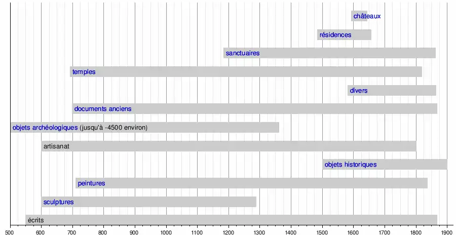 60. (ja) Agence pour les Affaires culturelles, « 登録美術品制度における登録状況 » [« Situation des œuvres prêtées »], sur www.bunka.go.jp (consulté le ).
