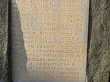 Plaque commémorative du monument aux morts portant les noms des morts pour la France de Trévé pendant la Première Guerre mondiale.