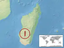 Cette espèce est endémique du parc national de l'Isalo à Madagascar[1].