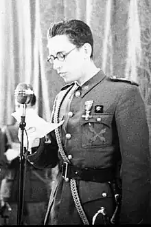 L'éclatement de la guerre civile déclencha l'émergence de certaines redéfinitions du traditionalisme[125] et de deux travaux synthétiques majeurs produits par Luis Hernando de Larramendi (es)[126] et Marcial Solana González-Camino[127]. Cependant, la fin des années 1930 et les années 1940 ont plutôt contribué à la confusion générale dans le camp traditionaliste. D'une part, le franquisme émergent se présentait comme une synthèse de toutes les écoles de pensée politiques authentiquement espagnoles, y compris le traditionalisme ; le défunt Pradera fut élevé au rang de l'un des pères fondateurs du système et certaines références traditionalistes furent ostensiblement revendiquées comme composantes de la nouvelle Espagne. D'autre part, le carlisme marginalisé entra en opposition au sein du système et ses dirigeants dénoncèrent le franquisme comme incompatible avec la perspective politique traditionaliste[128].