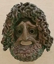 - Les masques conservés en marbre ou en terre cuite sont des copies destinées non pas à des représentations, mais par exemple à des offrandes. Cf. Baldry, p. 86.