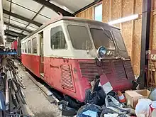 - 1 voiture fermée à deux essieux et plates-formes extrêmes ouvertes C7 dite « Badoise », construite en 1907 de fer et provenant de l'ancien chemin de fer touristique du Rabodeau ;