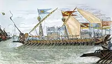 - Les navires vénitiens pourraient transporter le grain acheté n’importe où dans l’empire et l’exporter sans restriction, sauf dans les pays hostiles à l’empire, pour autant que le prix demeure à 50 hyperpères d’or pour 100 modioi. Si les prix venaient à augmenter l’exportation serait sujette à une licence spécifique donnée par l’empereur[34],[45].