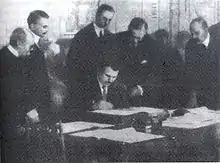 Le traité de Neuilly est signé à Neuilly-sur-Seine, le , par les Alliés et la Bulgarie, alliée de l'Allemagne pendant la Première Guerre mondiale. La Bulgarie doit rendre ou céder des territoires à ses voisins et payer des réparations de guerre aux Alliés.
