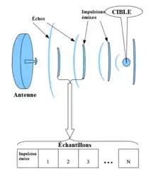 La distance maximale qu'on peut sonder sans ambiguïté dépend du utilisé entre deux impulsions subséquentes. En effet, la position de tout retour qui arrive d'une première impulsion, après qu'une seconde impulsion est partie, sera mal interprétée comme revenant de cette dernière. Selon la vitesse de rotation de cette dernière et la fréquence de répétition des impulsions (FRI), il peut y avoir des dizaines d'impulsions reçues et retournées par la cible.