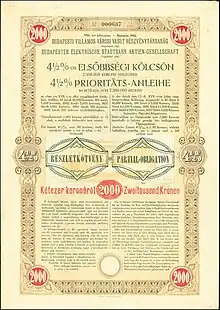 Le premier véritable tramway ne résulte pas de l'électrification d'une ligne de tramway à chevaux mais d'une construction neuve, proposée par Mór Balázs et réalisée par l'entreprise Siemens & Halske entre la Gare de Budapest-Nyugati et Király utca. Le premier villamos de la capitale hongroise reçoit ainsi son autorisation de circulation le par le secrétaire d'état au ministère des transports, Gábor Baross. Dans la foulée est créée la société d'exploitation du Train urbain de Budapest (Budapesti Városi Vasút, BVV), prédécesseur de la Société de transport en commun de Budapest (Budapesti Közlekedési Zrt., BKV).