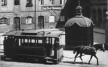 Les chariots étaient tirés par un cheval et, selon l'itinéraire et la charge, par deux chevaux. Il y avait des voitures fermées avec banquettes latérales et allée centrale, qui offraient jusqu'à 14 places assises et 14 places debout, ainsi que des voitures ouvertes avec jusqu'à 40 places en rangées transversales sans allée centrale.