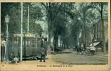 Ce tramway est appelé tramway des Boulevards. Il comprend une voiture tractée par un cheval. La longueur de la ligne est de 3,4 km. En 1908, la traction animale est abandonnée et en , l'exploitation est arrêtée à cause du manque de personnel mobilisé sur le front.