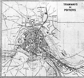 L'origine des lignes est située à proximité de la gare centrale du Pont Achard. Elle sera reliée par un tramway à la Porte de Paris et au Petit Blossac[2], à proximité du Pont-Neuf, en longeant les remparts de la ville et suivant les bords du Clain.